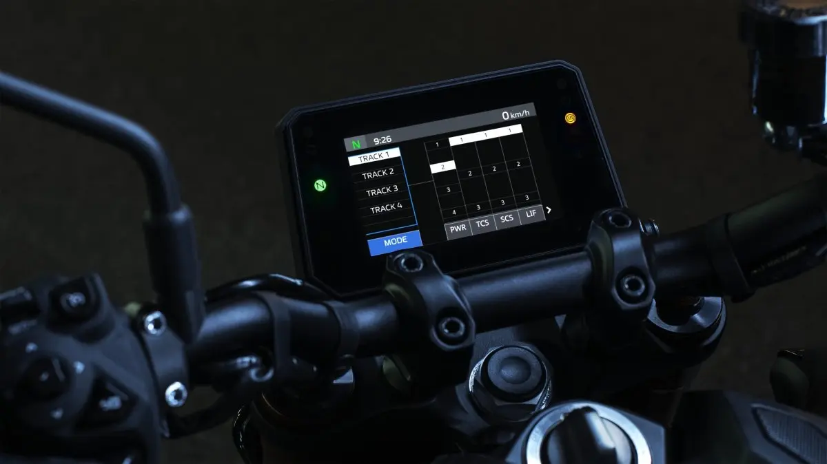 電子方面,MT-09 配備了一個 5 英寸的 TFT 顯示屏,提供四種不同的顯示主題,其中包括由雅馬哈音樂部門啟發(fā)的 “Generative” 顯示屏,轉速表看起來有點像鋼琴鍵。