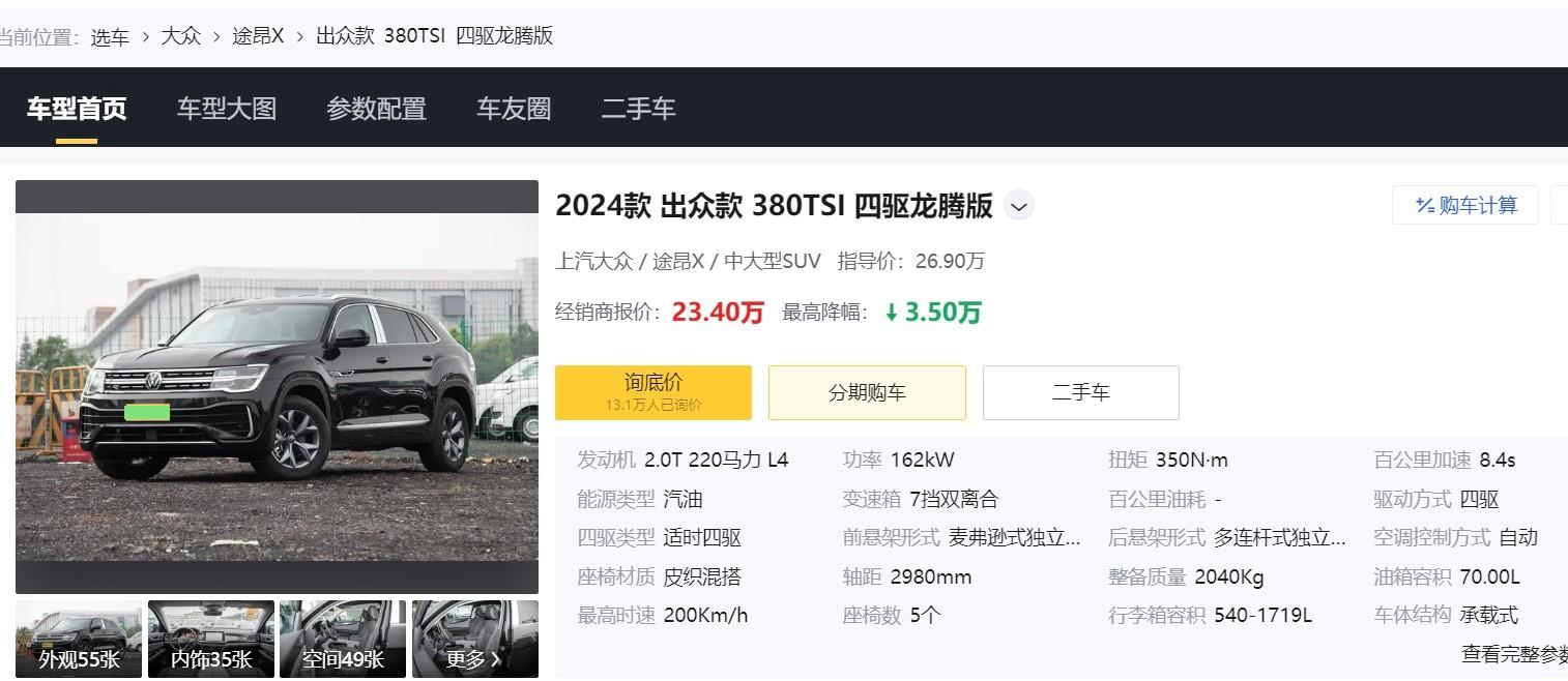 SUV在國內(nèi)一直保持著較高的熱度。相比傳統(tǒng)轎車,SUV不僅提供了更寬敞的空間,還具備良好的道路通過性。隨著人們對生活品質(zhì)的不斷追求,大家對SUV的空間及配置需求也日益提高。近期,有車友對途昂X 2024款 出眾款 380TSI 四驅(qū)龍騰版產(chǎn)生了濃厚興趣,并希望了解該車的養(yǎng)護(hù)成本。以下,就為大家詳細(xì)解析。