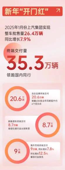 喜迎2025開(kāi)門(mén)紅!1月份上汽銷(xiāo)售35.3萬(wàn)輛,領(lǐng)跑行業(yè)