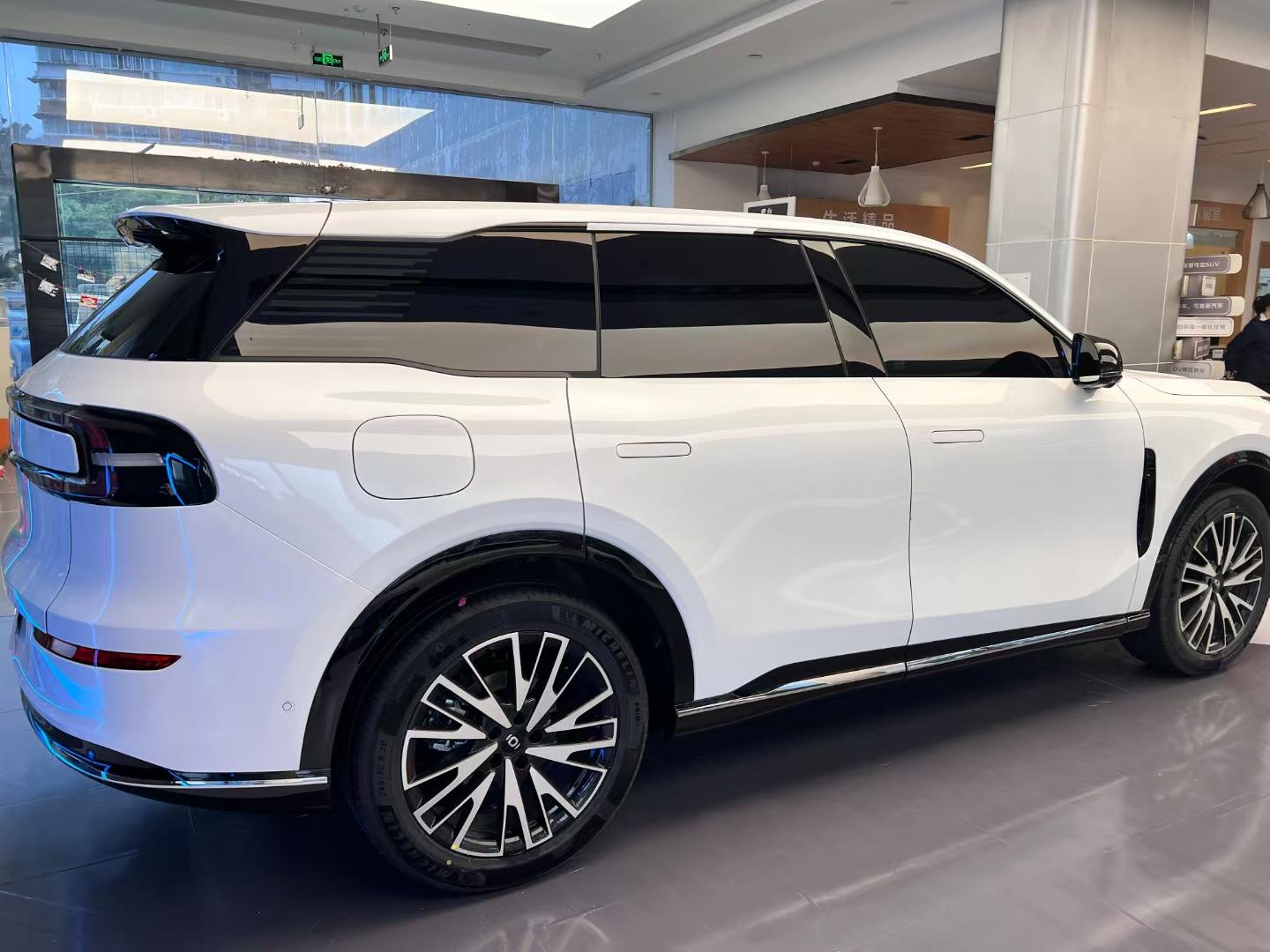 車身尺寸長寬高分別為4837/1920/1690mm,軸距2905mm,相比宋L DM-i大了一圈。龐大的身軀配合飽滿的車身輪廓,給人感覺很有氣場,加之熏黑“鯊魚鰓”飾板、懸浮式車頂、20英寸多幅式輪轂等,又進一步提升了豪華感。而無框車門、隱藏式門把手、環(huán)形貫穿式尾燈的加持,又帶來時尚、前衛(wèi)屬性,并提供松煙墨、月華銀、點翠綠、云影灰、云錦白,共5種潮流車色可選。