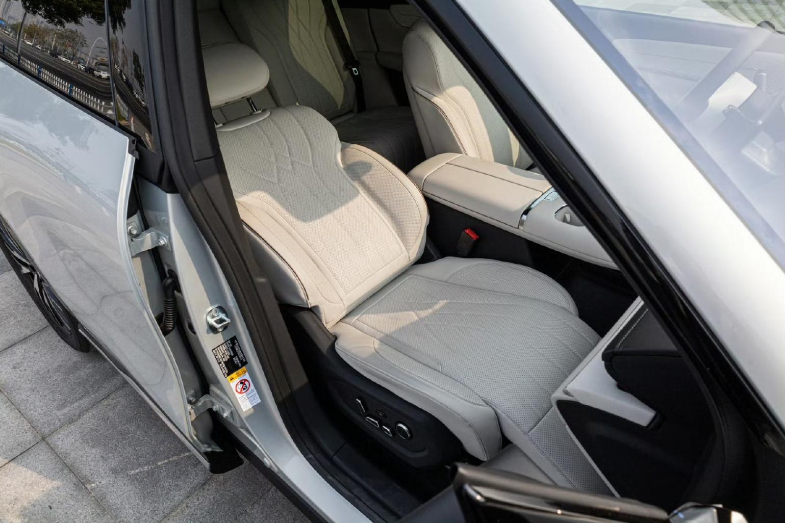 車內(nèi)采用大五座布局,副駕采用帶電動腿托的“零重力”座椅,并支持按摩、通風、加熱等功能,再配合傳統(tǒng)化妝鏡位置的12.8英寸折疊娛樂屏,乘坐舒適性不言而喻。而后排座椅也支持41°電動調(diào)節(jié)、通風/加熱功能,加之純平地板、全景天幕、后排小桌板+拓展PAD屏、帶杯架的中央扶手、33處儲物空間等,同樣保證舒適性。同時,前排座椅靠背還可與后排相連,后排座椅也可放倒。