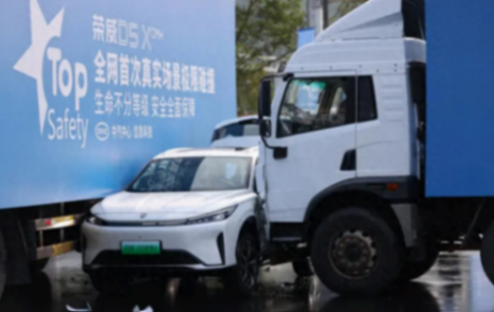 在今年上半年,榮威D5X DMH開展模擬“雨天大貨車雙側連環(huán)碰撞測試”,當天真實還原雨天十字路口環(huán)境,標準為8.6噸的大型載貨車以30km/h的速度,高速駛向榮威D5X DMH,并垂直于大貨車發(fā)生碰撞。同時,在受到首次撞擊后,另一側與標準為8.6噸的大型載貨車,再次發(fā)生二次碰撞。不過,根據模擬現(xiàn)場的結果來看,新車座艙內部完整度較好,6個安全氣囊與4個車門均正常開啟,完全保護了乘客的安全性。最終,經認證機構確定,榮威D5X DMH也是成功通過本次“雨天大貨車雙側連環(huán)碰撞測試”挑戰(zhàn)。