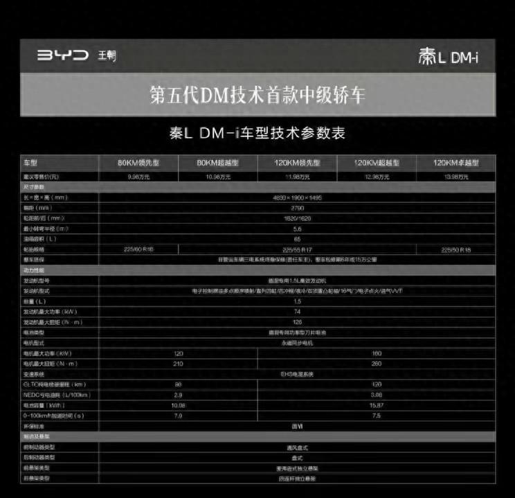 在秦L即將上市,比亞迪第五代DM動(dòng)力發(fā)布的檔口,網(wǎng)絡(luò)上提前曝光了一組秦L的價(jià)格和配置表,內(nèi)容顯示:新車(chē)共分為共分為5個(gè)配置,售價(jià)9.99萬(wàn)起。您覺(jué)得可信嗎?咱們來(lái)分析一下。