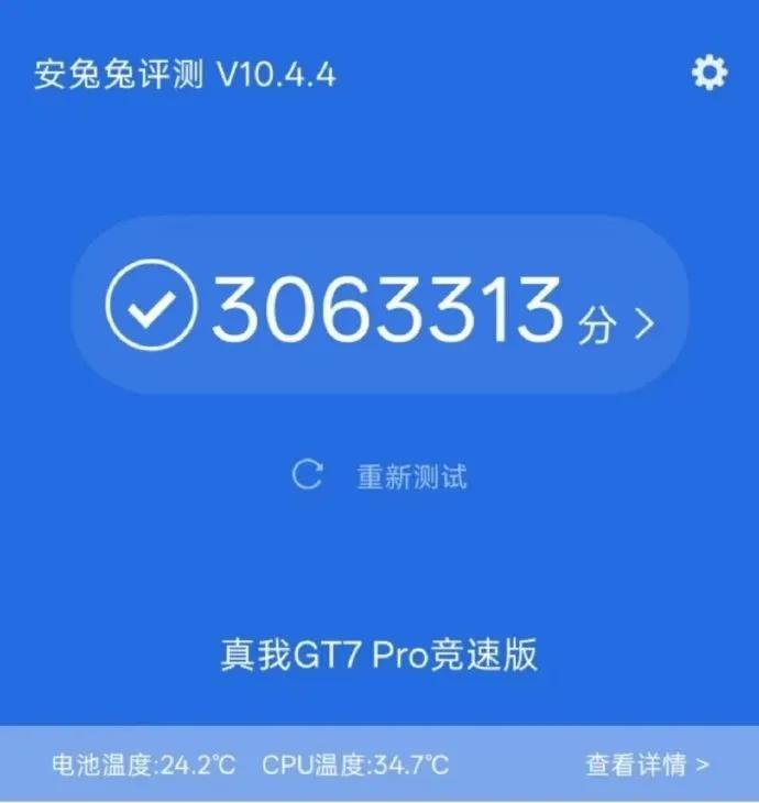 據之前爆料,新機型號為RMX5090,外觀與真我GT7Pro類似,只是去掉了長焦鏡頭,符合“純血性能旗艦”的定位。核心方面將搭載驍龍8Elite芯片,據目前曝光的安兔兔跑分來看,應該是8核滿血版本。