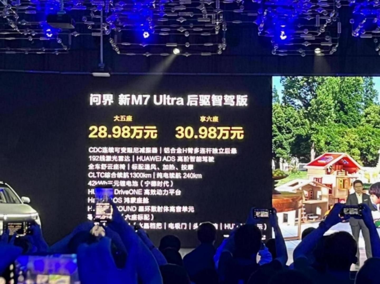 問界新M7 Ultra正式上市,新車共推出4款車型,售價區間為28.98萬-32.98萬元。作為改款車型,新車對外觀內飾等方面進行了煥新升級。采用了全新的星際藍外觀顏色,以及問界M9同款星環散射體、空間音頻。此外,新車還升級了192線激光雷達提升智駕能力。動力方面,新車搭載1.5T增程動力系統。