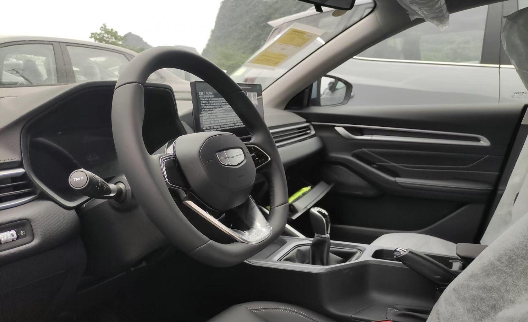 車尾部分,現(xiàn)款車型是貫穿式尾燈,而新車對尾燈進(jìn)行了重新設(shè)計,不再是貫穿式,中間用一塊黑色飾板連接,上面還有“GEELY”字樣,在成本和視覺效果之間取得了不錯的平衡。新車的后包圍造型比較平庸,只有一塊黑色飾板,沒有集成排氣管,削弱了車尾的運動感。從后45度來看,新車的造型有點像吉利星瑞,意在突出年輕時尚的感覺。