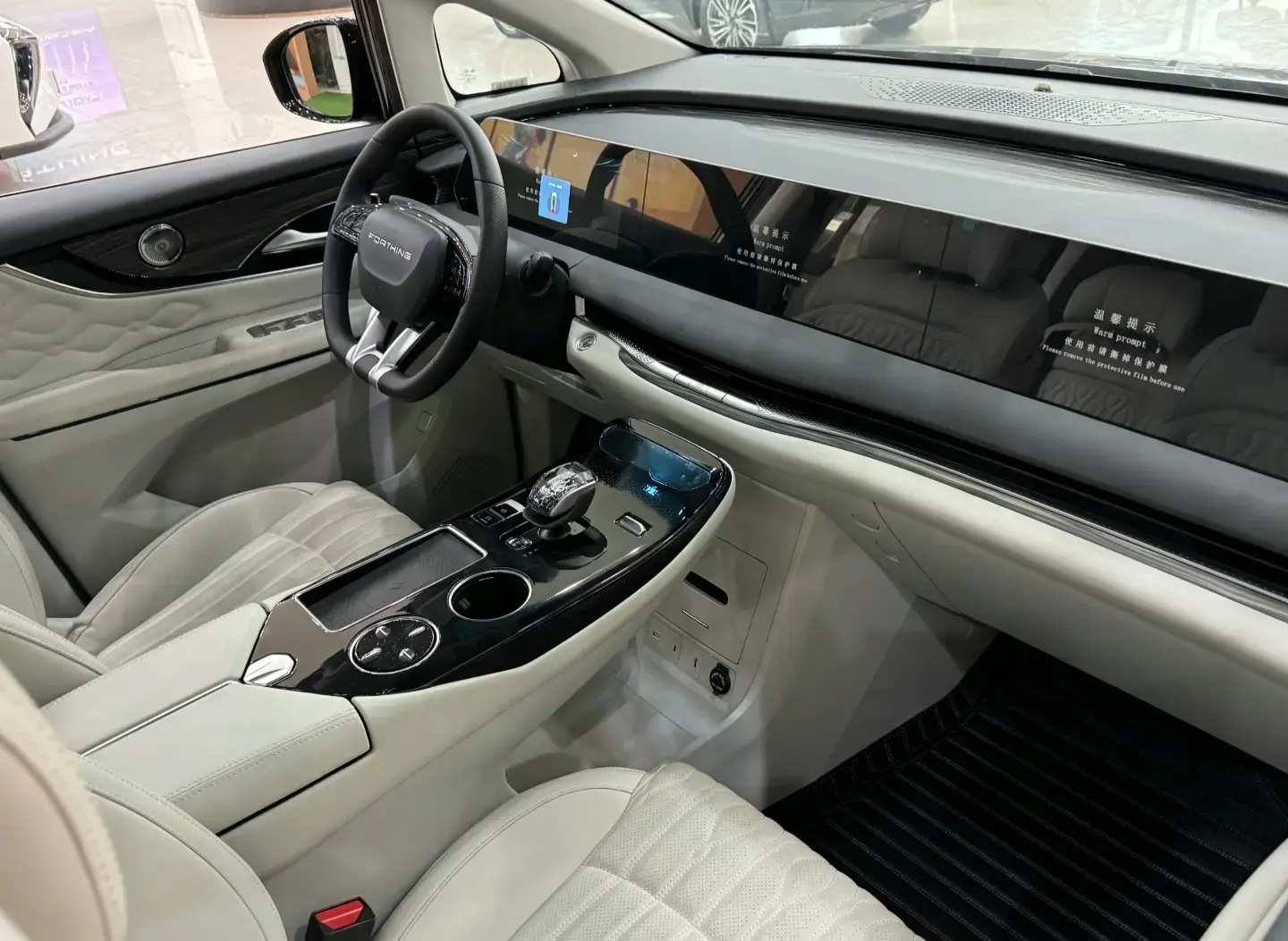 在外觀方面,新車分為中國結和青云梯兩個系列,分別對應了低配和高配,前者為獨特的直瀑式鍍鉻中網填充,左右兩側配分體式大燈組簡單相當的個性,前保險杠部分還有一個特殊的黑色裝飾,進一步提升辨識度。后者則采用了橫條幅狀的鍍鉻中網填充,辨識度其實一點都不算差,大燈組等元素也更加的個性,顯得更為高級。車身側面當然都是同一套設計,寬大修長的MPV線條有著大量的鍍鉻裝飾,懸浮式車頂,動感的腰線,大尺寸輪轂等元素,比一般的競爭對手少了一絲嚴肅的商務風多了意思是動感。