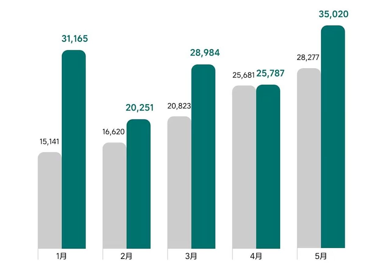 近日,理想汽車公布了5月份交付狀況在剛剛過去的一個(gè)月中,理想共計(jì)交付新車35020輛,這個(gè)數(shù)字相比于去年年底的4萬輛5萬輛雖然還有較大的差距,但同比增長(zhǎng)了23.8%,環(huán)比也有著大幅度的增加,同時(shí)創(chuàng)造了今年年內(nèi)的新高。總體還是有著明顯的復(fù)蘇態(tài)勢(shì),看來各種車型的逐漸鋪開及促銷活動(dòng)起到了一定的效果。