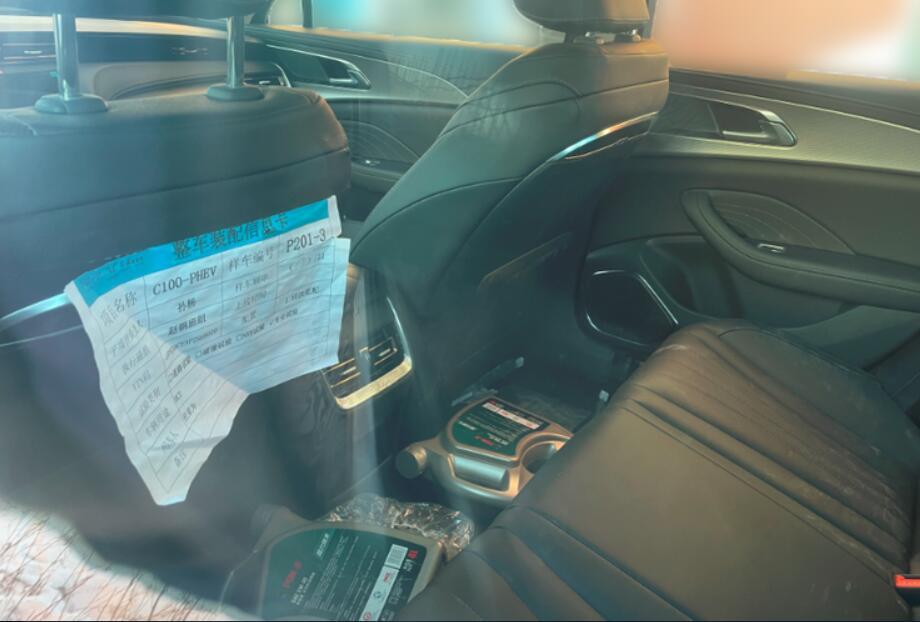 車尾部分貫穿式的尾燈左右兩側分叉,中央有鍍鉻條插入也是熟悉的元素,與燃油車型形成對應。在內飾部分,前排縱向的懸浮式中控屏幕配懸浮式液晶儀表盤組成的雙屏系統,展翼式的中控臺面,精致的電子擋桿,帶有蓋板的杯架儲物格等元素都不會缺席,層次感豐富的中控臺面門板裝飾也提升了足夠的檔次感。后排方面設計層面也沒有太大的變化,空間是絕對夠用,而整車裝配信息卡上清晰地顯示了C100 PHEV再度實錘了該車的身份,與外觀的充電接口形成對應。
