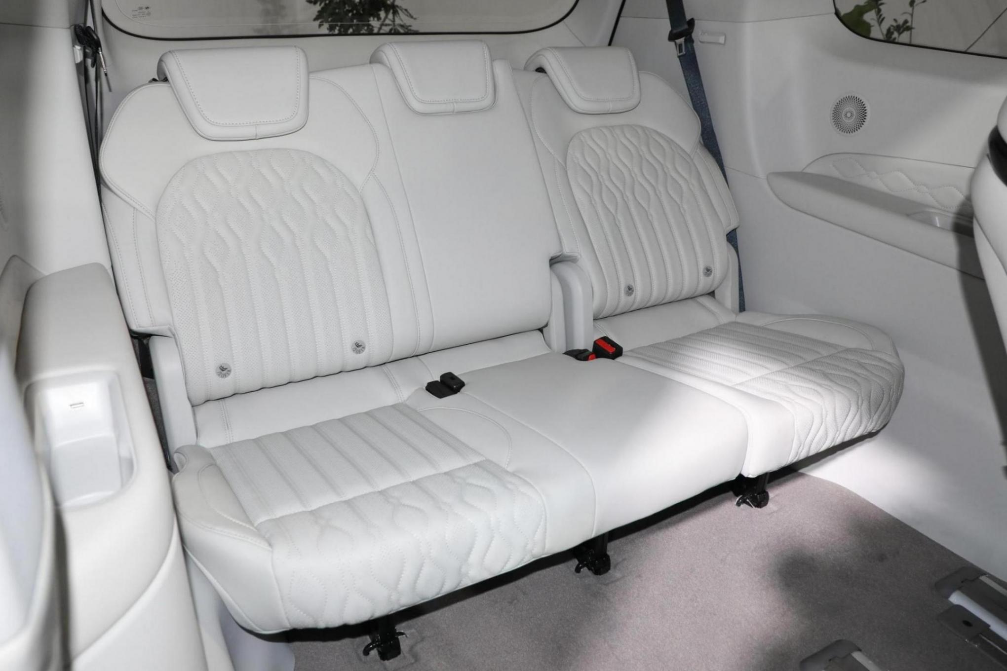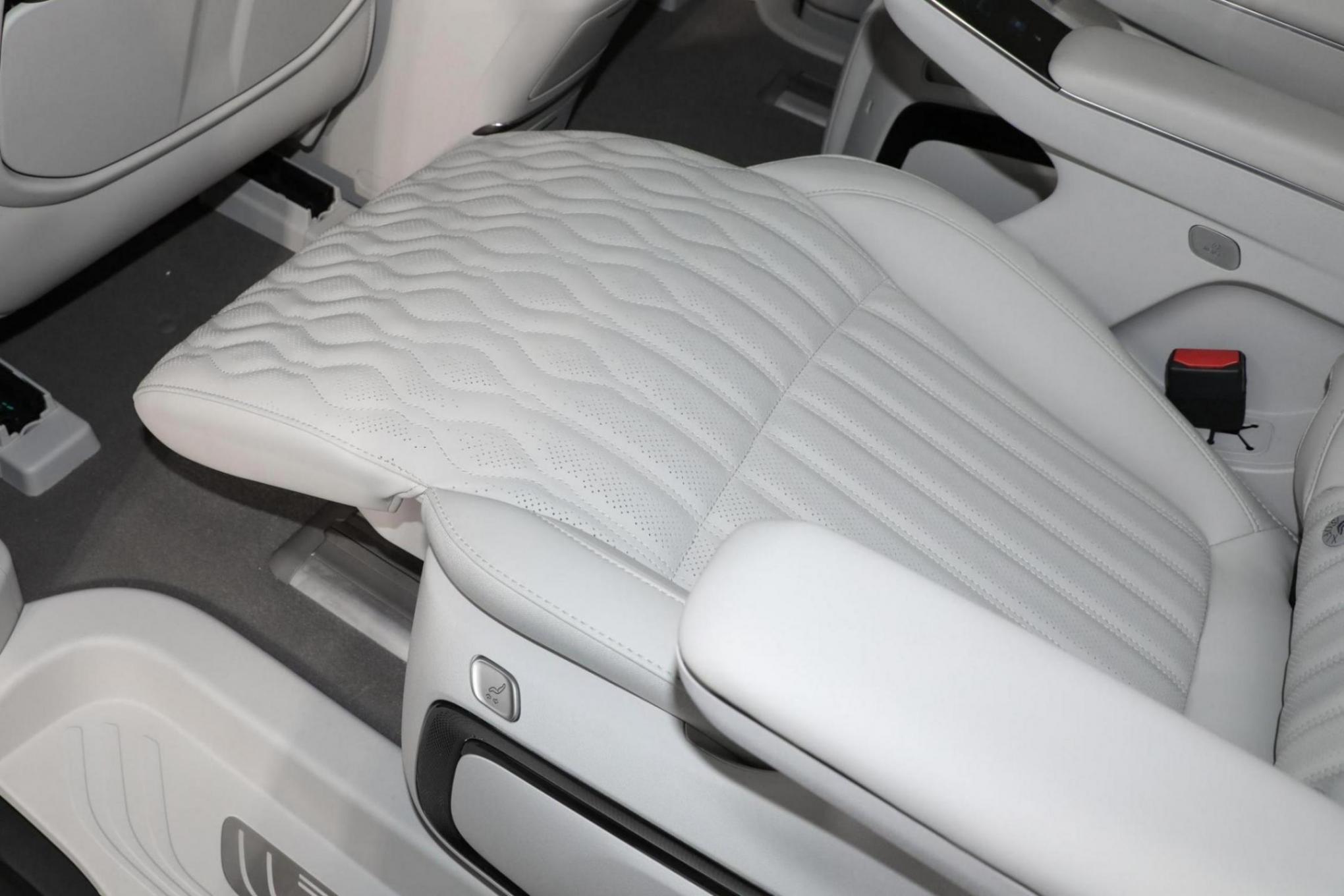 在內(nèi)飾部分,由于是較高配置的車型,新車上來(lái)就是高配的三大尺寸懸浮式液晶屏設(shè)計(jì)理念,科技感達(dá)到了領(lǐng)先的水平,環(huán)抱的中控臺(tái)面有著層次感豐富的布局,隨處可見(jiàn)的鍍鉻木紋啞光金屬等質(zhì)感面板進(jìn)行貫穿,加上撞色內(nèi)飾配色再度增強(qiáng)了豪華的屬性。扶手箱前端區(qū)域則有著大量實(shí)體按鍵和實(shí)體的電子檔桿,提升了實(shí)用的屬性。在后排新車也直接就是高配第2排獨(dú)立座椅有著自帶的內(nèi)側(cè)扶手觸摸控制屏和更加扎實(shí)的版型體驗(yàn),通風(fēng)加熱按摩腿托豐富角度可調(diào)都不會(huì)缺席,填充也相當(dāng)?shù)暮駥?shí),提供了出色的乘坐體驗(yàn)。