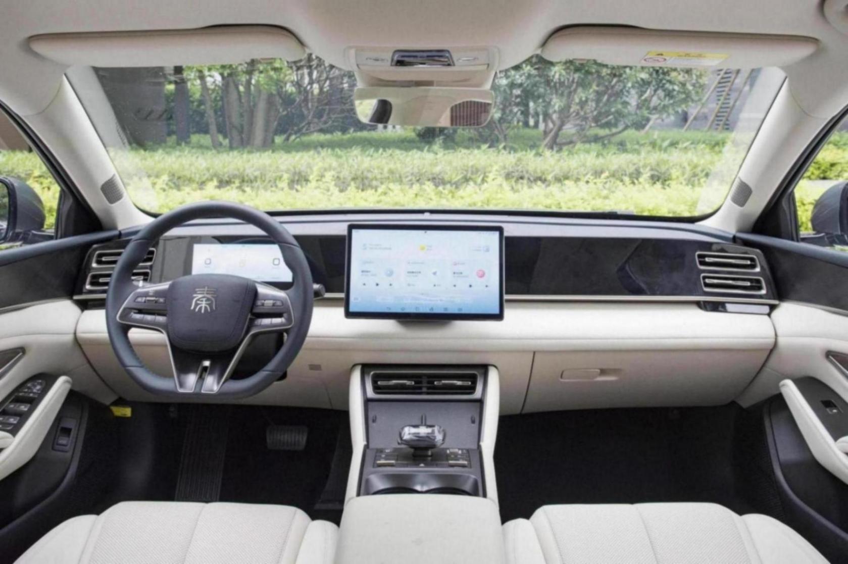 車身側面采用溜背式設計,修長的車身線條搭配“低趴”的車身姿態,看上去很有運動感。車身尺寸方面,新車長寬高分別為4830/1900/1495毫米,軸距為2790毫米,定位為中型轎車,整體比秦PLUS大一圈。