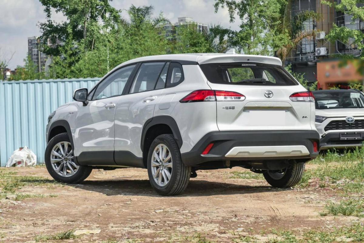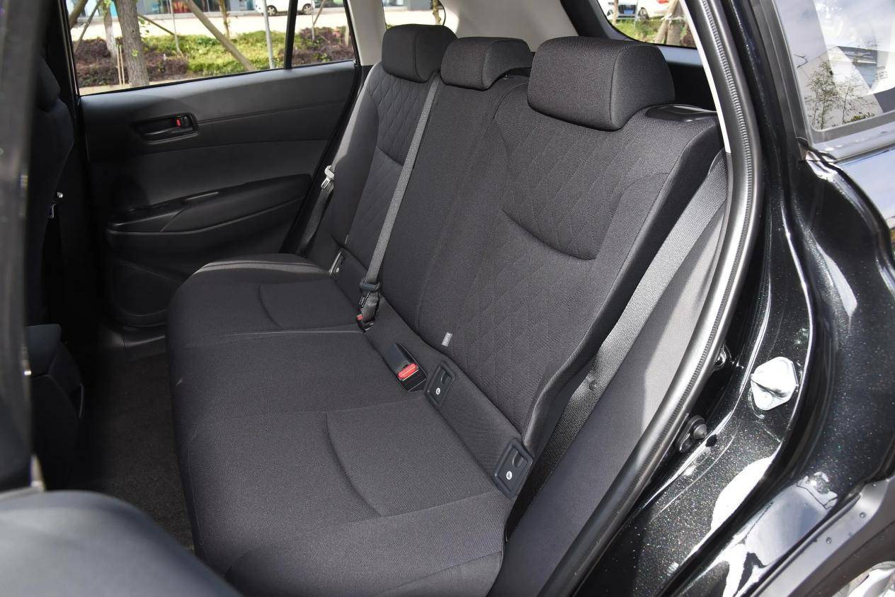 側面緊湊飽滿,車窗線條從B柱之后開始上揚,配合隆起的腰線,帶來很強的力量感,車身四周同樣配有黑色塑料裝飾來強化SUV氛圍,配備18英寸輪轂,比卡羅拉銳放的大了一寸,輪胎寬度二者倒是一致。兩款車型都配有非全尺寸備胎,尾部設計的緊湊利索,尾燈組尺寸不大,內部熏黑處理,后杠也是黑色包圍+銀色裝飾,增添運動感。