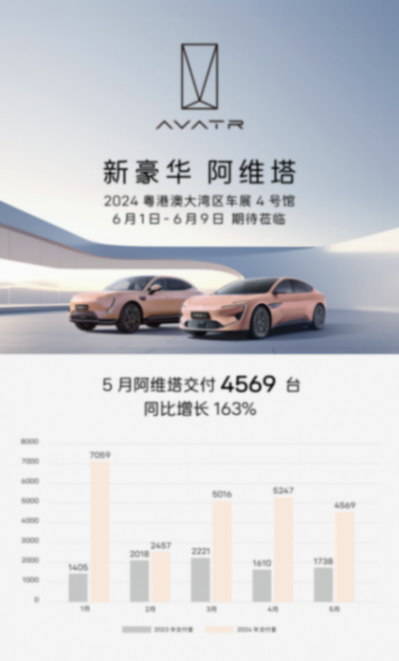 同比增長163%,阿維塔5月交付4569輛