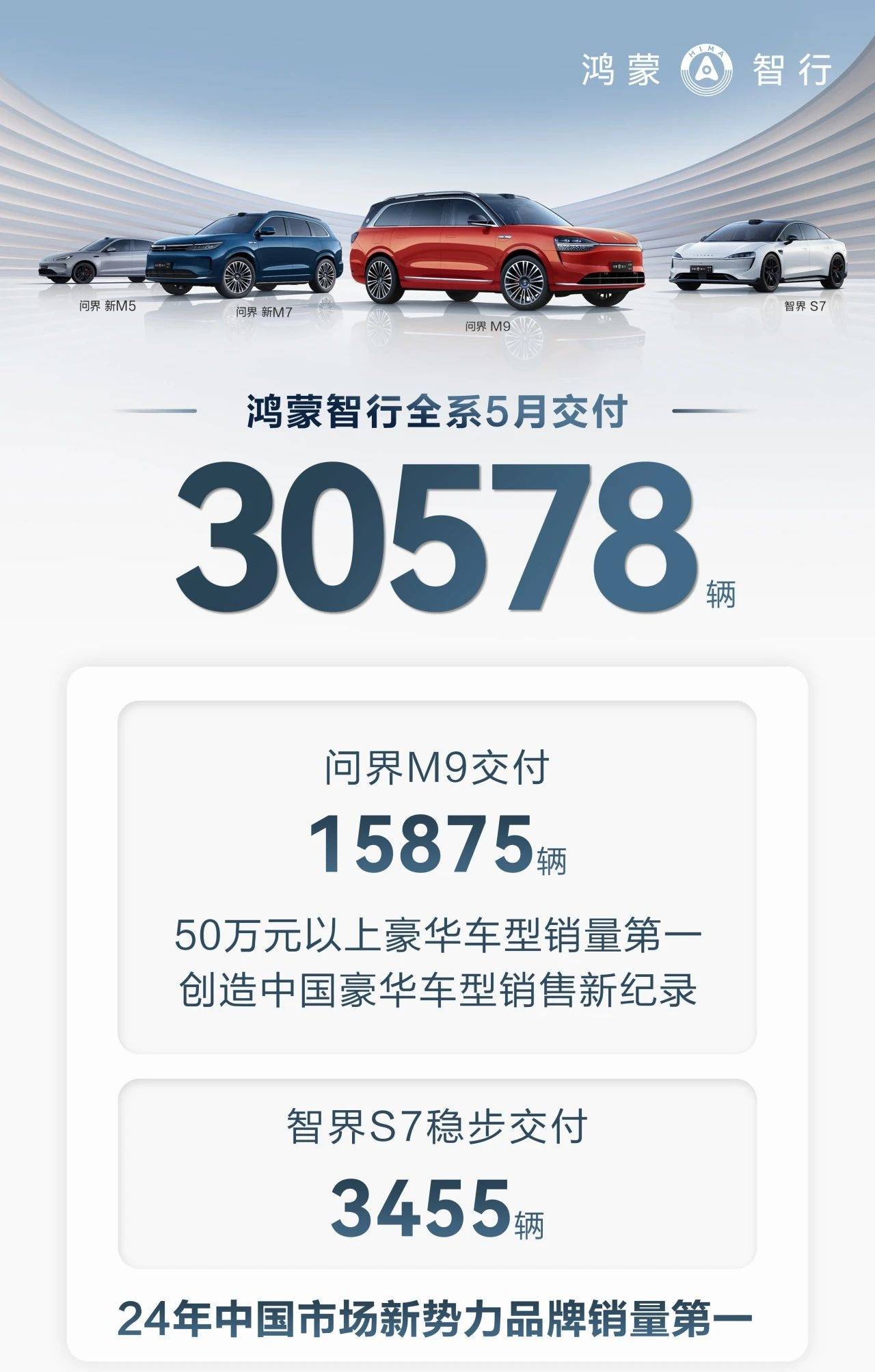 環(huán)比增長3.2%,鴻蒙智行5月交付30578輛