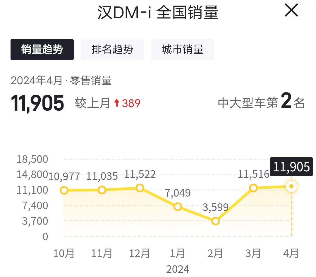因此如果你需要經(jīng)常用車的話,漢DM-i一年的油費(fèi)要比同級(jí)別燃油車節(jié)省不少。從銷量來(lái)看,漢DM-i在3月份和4月份分別賣出11516輛和11905輛,表現(xiàn)頗為強(qiáng)勢(shì)。