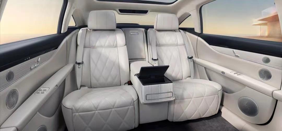 內飾方面,官方暫未具體公布,但從發布會上公布的一張后排空間圖來看,享界S9將采用4座布局,中間的扶手相當寬厚,車內有著時下流行的配置。比如車載冰箱、投影、沉浸式的音響效果。車內預計搭載華為最新的智能黑科技,拭目以待。