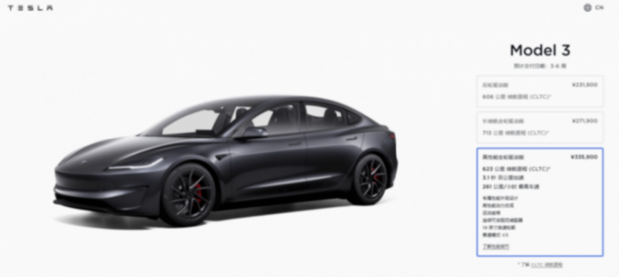 近日,特斯拉官宣新款Model 3高性能版從預售轉為正式銷售,預計6月中旬開啟首批交付,售價仍然為此前公布的33.59萬元。與Model 3長續航全輪驅動版相比,高性能版的提升其實沒有想象中那么大,最大功率提升12kW至343kW,零百加速來到3.1秒,但對比極氪007、小米SU7的頂配車型的確不占優勢,不得不感嘆中國自主品牌進步之快。
