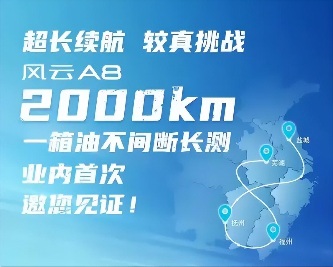除了上述的三款車型,今年3月份奇瑞風云A8也發起了“一箱油跑2000公里”的挑戰。奇瑞風云A8遠航版油箱容積為60L,雖然實際測試結果未能達到預期目標,但最終成績為1917.9公里和1935公里,距離2000公里的目標已經相當接近了。