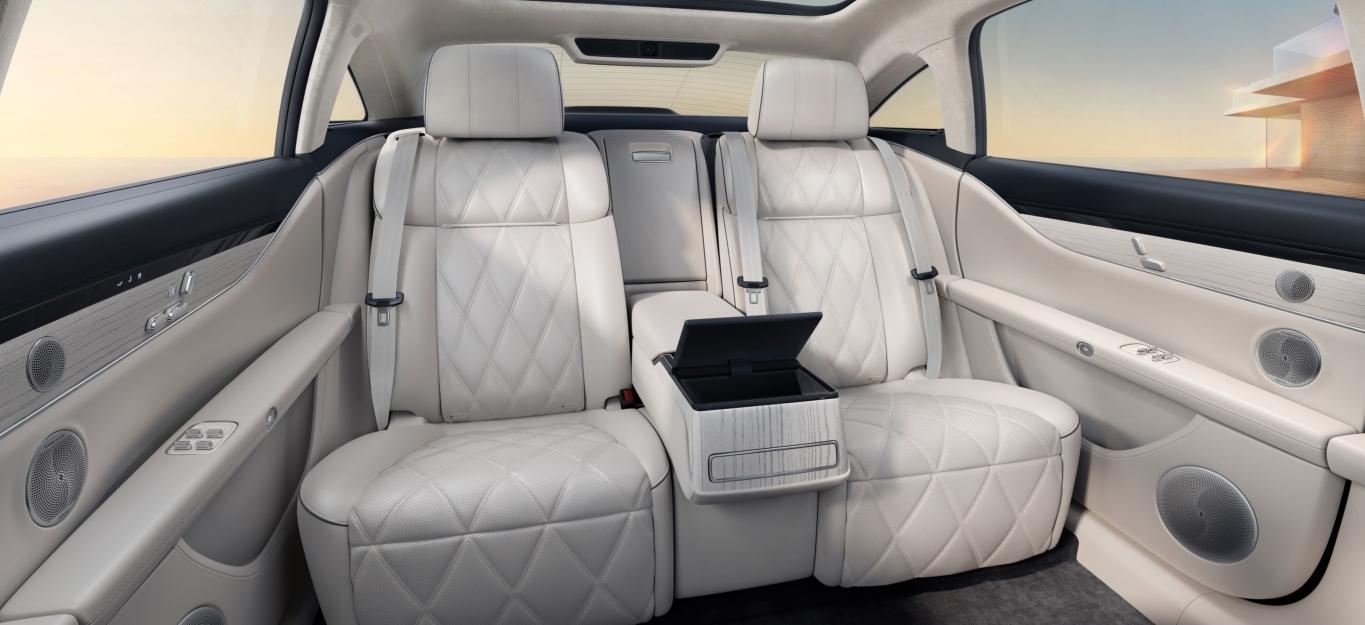 第一就是舒適性的配置新增太多了。比如4座布局以及更為豪華的零重力座椅,再比如后排電動遮陽簾,投影儀、冰箱、液晶控制屏。我們在現在唯一的一張內視圖里面都能看出來。就這一張圖已經讓人看完了充滿了幻想,或許正式上市的時候享界S9的車內配置會讓人驚掉下巴。