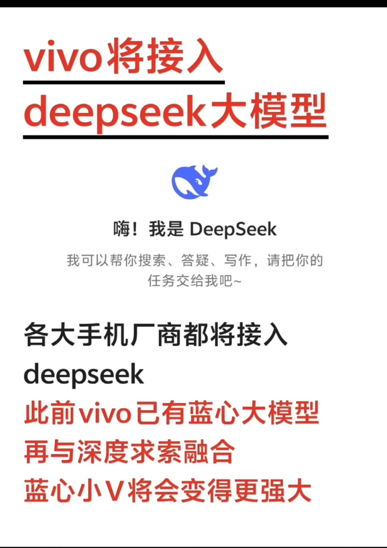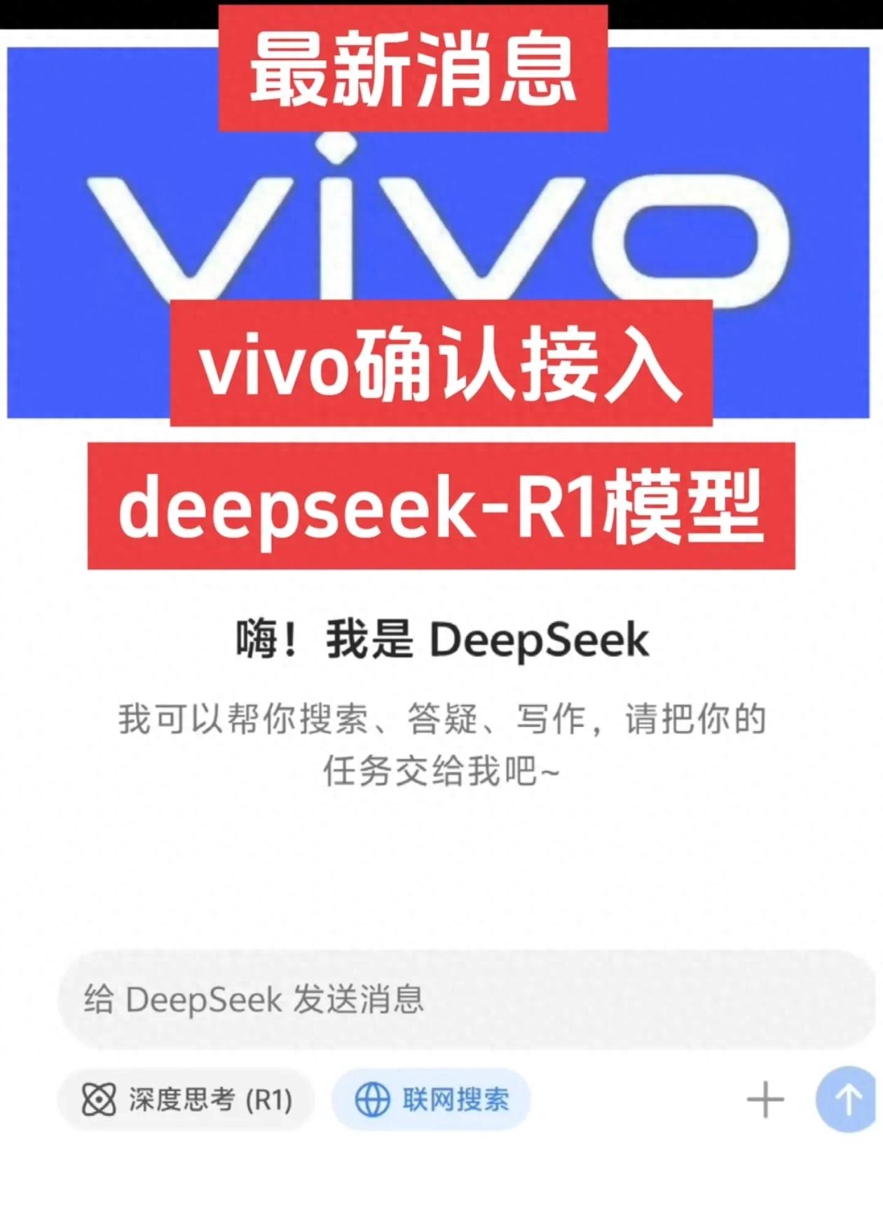 春節期間,科技圈被一則重磅消息刷屏:vivo確認接入DeepSeek-R1模型!這一決定猶如一顆投入平靜湖面的巨石,瞬間激起千層浪,讓整個手機行業和AI領域都為之震動。