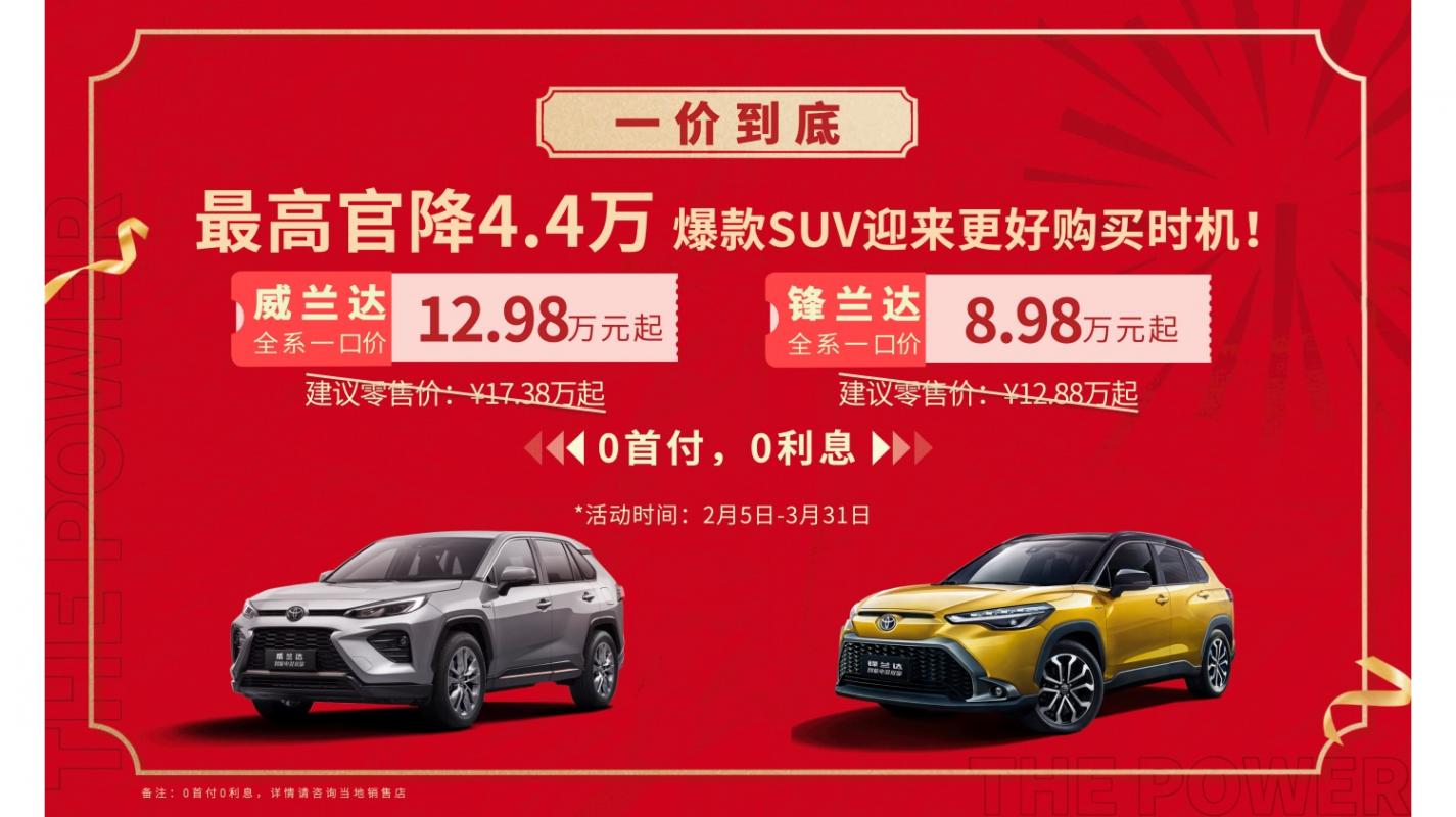 2025年的春節,廣汽豐田以一場線上發布會為車市注入了新活力。就像開啟了一扇全新的窗戶,兩款熱銷SUV——鋒蘭達和威蘭達,推出了“一價到底”和“一保到底”的政策,讓消費者在購車時不再迷霧重重,真是激動不已!此外,價格可直接降至8.98萬元和12.98萬元,降幅竟然高達4.4萬元,仿佛為買車的朋友們省下了一筆“年終獎”。