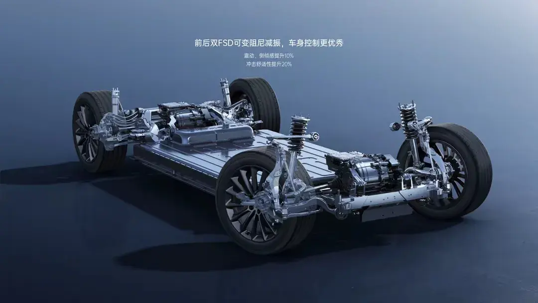 零跑C11在駕控層面帶來了全新的體驗,全系標配前雙叉臂后五連桿豪華懸架,純電版車型還增加了特有的FSD可變阻尼減震系統,使車輛的安全性與乘坐舒適性達到一個完美的平衡點,即使是在復雜的路面穿梭,也能做到游刃有余。