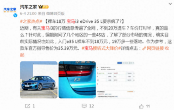 6月4日,一則寶馬腰斬式大降價的熱搜登上了微博熱搜的榜首位置。