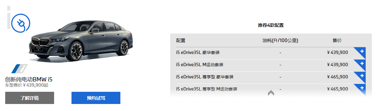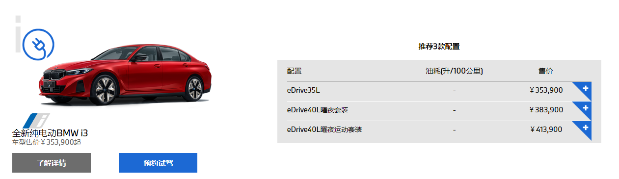 在寶馬官網(wǎng)可以看到,目前的寶馬i3共有3款車型可以選擇,售價區(qū)間在35.39萬-41.39萬元;寶馬i5共有4款車型可以選擇,售價區(qū)間在43.99萬-46.59萬元。不過針對這次的熱搜,寶馬還未作出回應。
