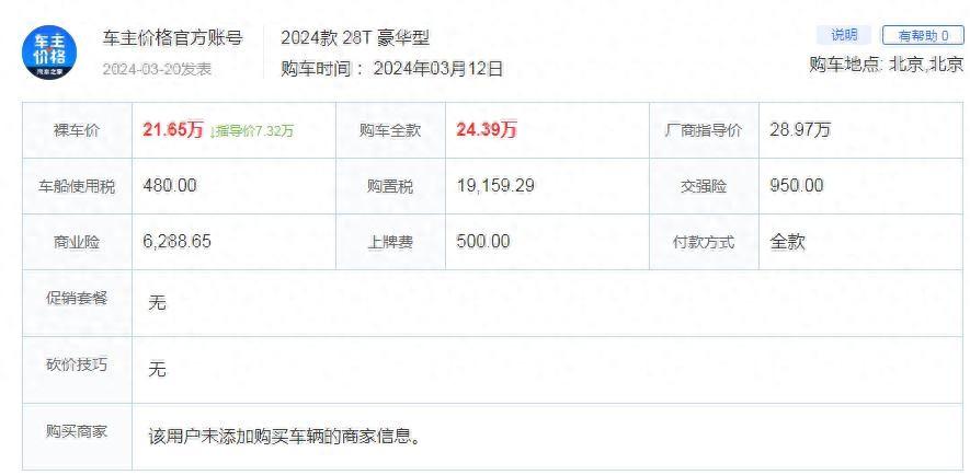 凱迪拉克CT5是一款豪華品牌中型轎車產品,這款車的尺寸為4930/1883/1453mm,軸距為2947mm,屬于一款比較大,但是車身相對低矮的中型車。這款車廠商指導價為28.97—34.17萬元,目前這款車的優惠幅度很大,我們看到真實車主給出的最低起售價,已經來到了21.65萬元的水平,各項費用加起來,24萬多一點就落地了!這個價格,就要比一線豪華品牌的3系、C級這樣的車型,要有優勢多了。