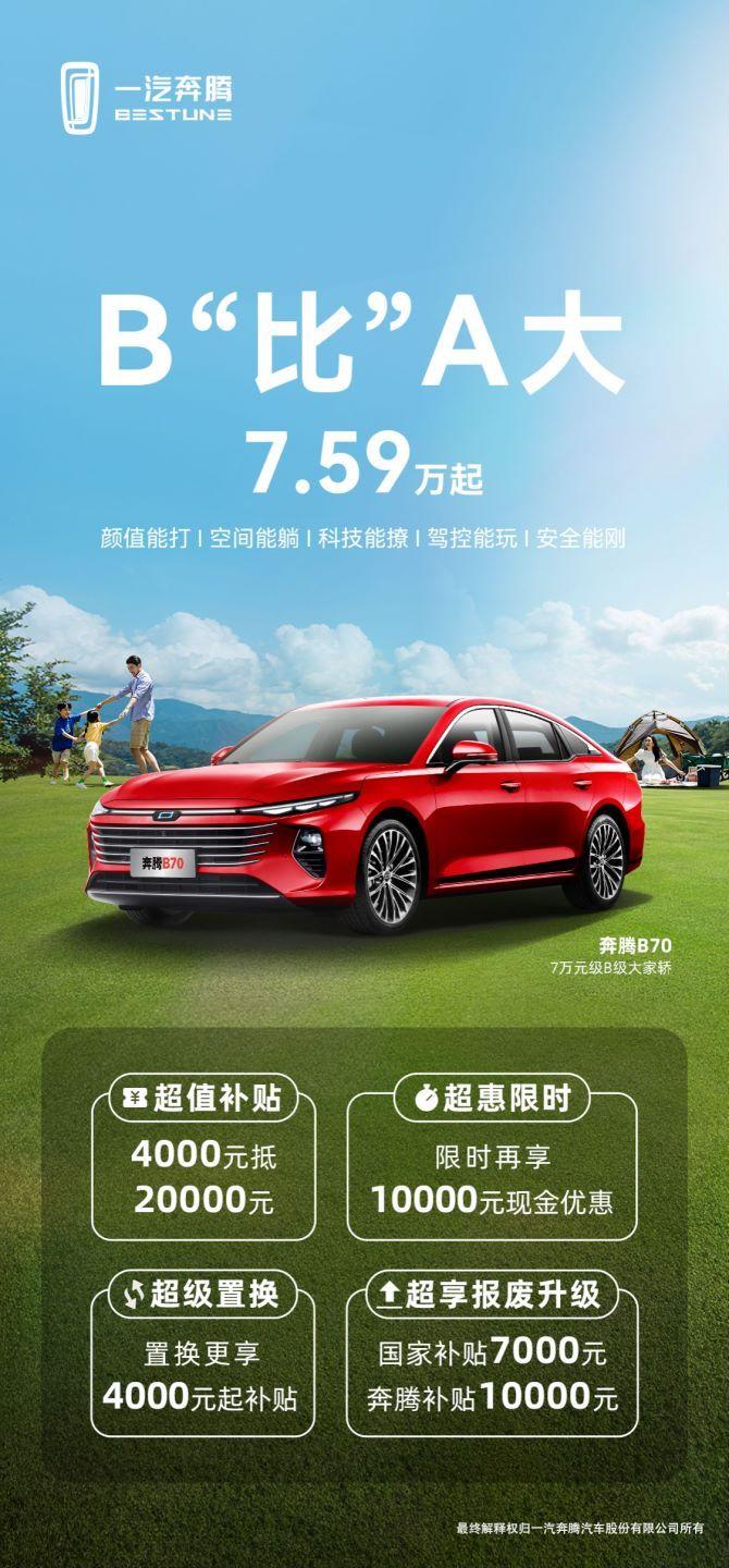 當幸福來砸門!奔騰B70起售價僅7.59萬,炫技B級家轎市場