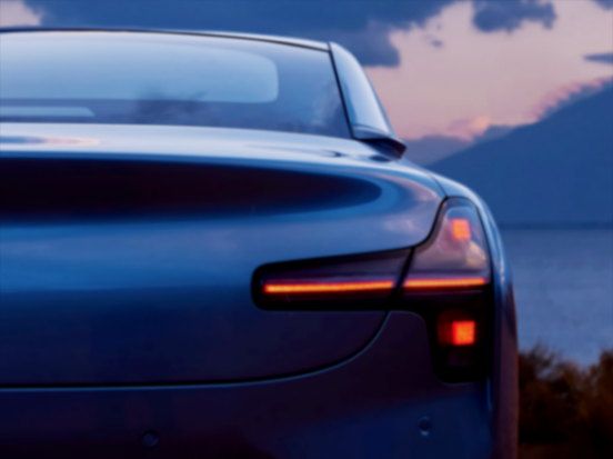 車尾部分,尾燈造型和前大燈相呼應(yīng),包括內(nèi)部光源結(jié)構(gòu)也是相對應(yīng)的。尾箱蓋后端還帶有突出的小鴨尾造型。