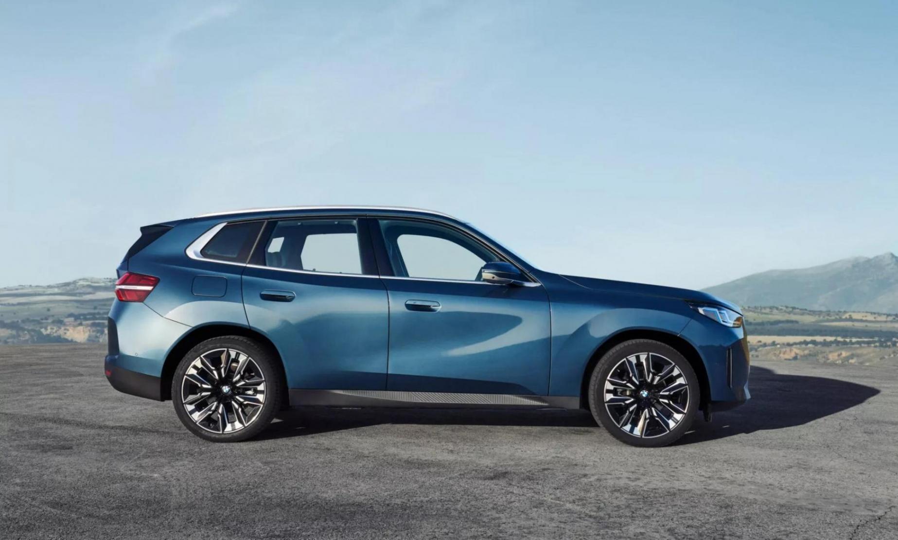 在車身的側面,全新一代的寶馬X3采用的是非常干練的設計,新車的形象大變樣,設計風格和寶馬XM有些類似。新車采用的是下沉式的車頂設計,D柱采用前傾式的風格打造,它的車窗的底部以及D柱的前側有鍍鉻條的裝飾,新車的車身的側面采用的是上揚式的腰線裝飾,車的底部采用的是極簡化的包圍。全新一代的寶馬X3 M50 xDrive的車窗的周圍采用的是黑色的裝飾條點綴,它的車輪更大,表現得更加兇悍一些。