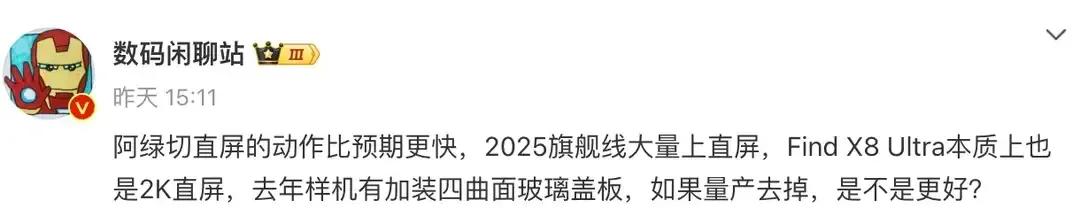 Find X8系列賣得那叫一個火爆,F(xiàn)ind X8 Ultra也跟著要搞大事情。原本打算用的等深四微曲設(shè)計,現(xiàn)在可能要換成純直屏啦。