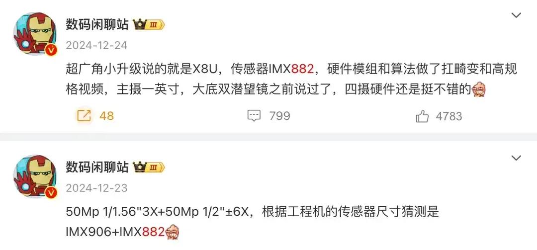 還補(bǔ)上了IPX6/IPX8/IPX9防水和50W無線充電功能,這下使用場景更豐富了。不過為了輕薄,影像可能會稍微削弱一點,主攝和潛望長焦預(yù)計是LYT - 808+IMX882,但日常拍照也完全夠用啦。