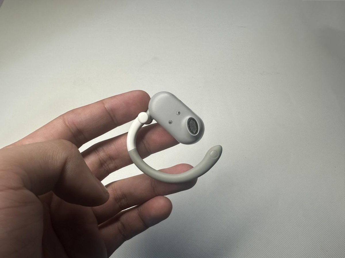 小米開放式 :9.6g的單耳重量,久戴的話不會有很強(qiáng)烈的存在感,液態(tài)硅膠的材質(zhì),柔軟舒適,內(nèi)部采用柔性鎳鈦合金絲,抗彎抗折,耳掛雖然不能調(diào)節(jié)大小,但是佩戴還是比較舒適的。