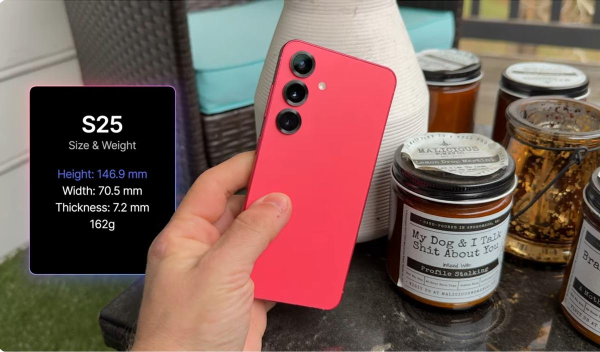 僅重 162 克的 S25,相較于 218 克的 S25 Ultra,手持感更為舒適,長時間使用也不易感到疲憊,對于追求輕巧便攜的用戶而言,無疑是理想之選。