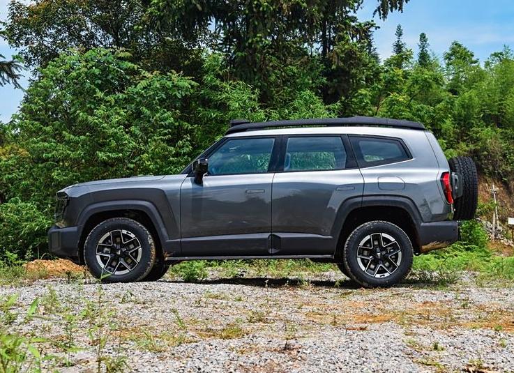側(cè)身造型飽滿且富有力量感,車窗區(qū)域逐漸收窄,配合極具立體感的腰線設(shè)計以及較大尺寸的越野輪轂,符合大家對硬派SUV的預(yù)期。官方表示,其車頂行李架動態(tài)承重可達(dá)80kg,靜態(tài)承重300kg,還可選裝車頂帳,擴展出上下雙層空間,容納五人休憩。