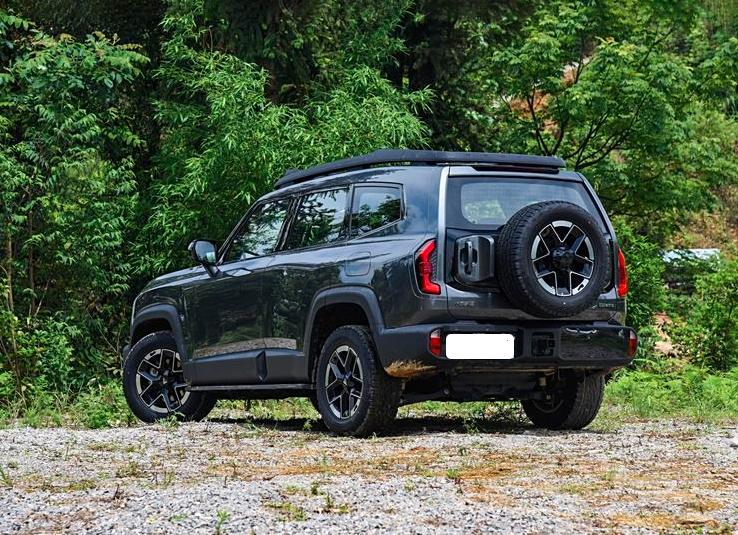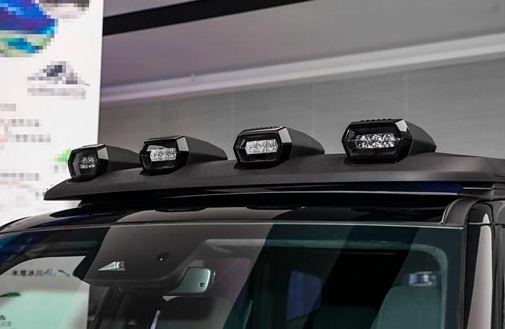 尾部造型延續(xù)了粗獷的設(shè)計風(fēng)格,粗壯的后保險杠造型與前保險杠形成呼應(yīng),配備外掛式備胎,采用側(cè)開式尾門結(jié)構(gòu)。尾燈雖然尺寸不大,但立體感十足,點亮后效果還是很吸睛的。該車還將配備原廠拖車鉤與高位剎車燈,進一步保障越野行駛安全,頂配車型還提供電吸尾門。