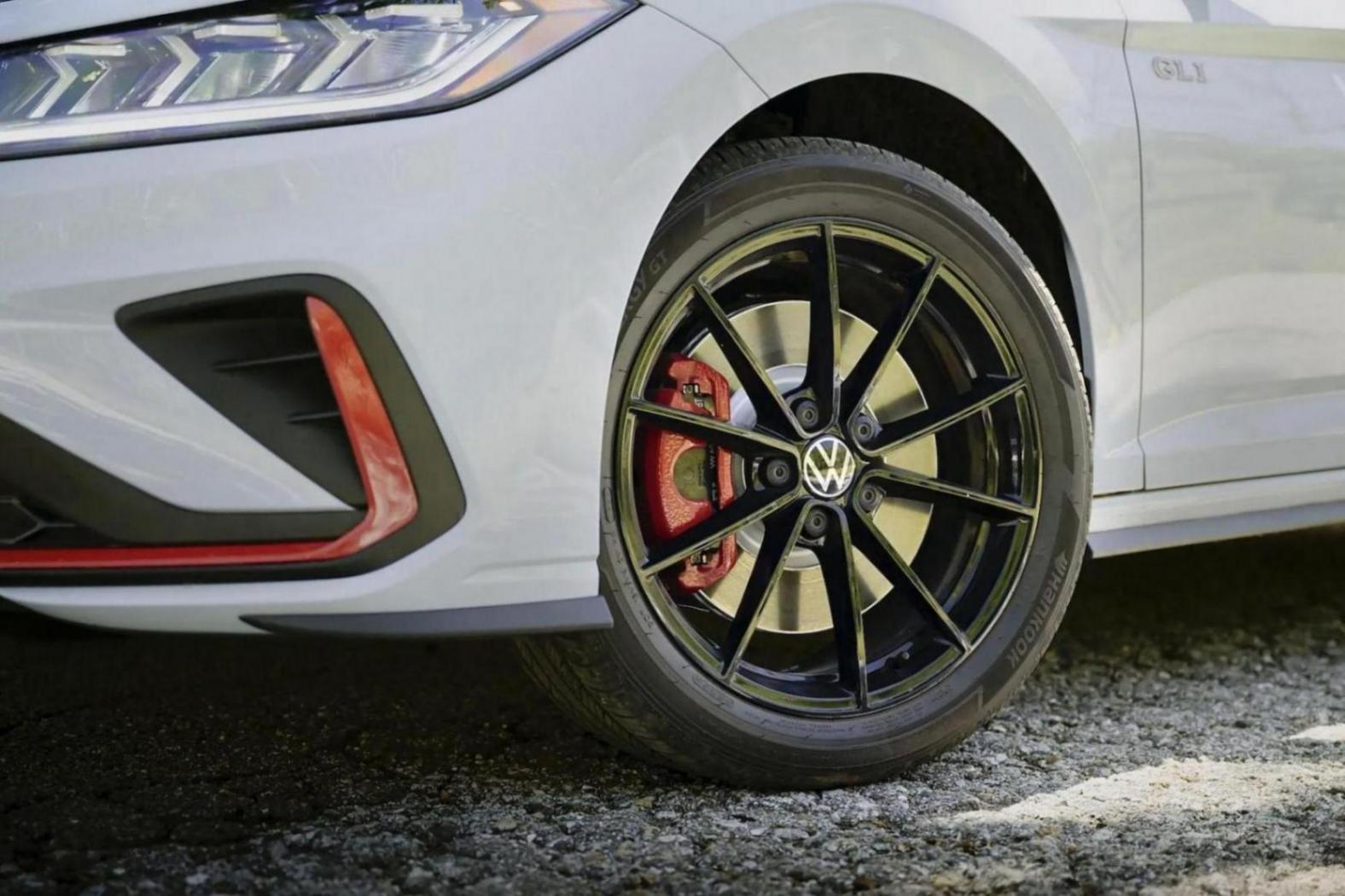大眾還在輪轂方面玩起了花樣:普通版高配車型采用了全新設(shè)計(jì)的輪轂,和現(xiàn)款的大花瓣有所不同,顯得更加精致;而GLI車型則搭配了黑色的多輻式輪轂,運(yùn)動(dòng)氣質(zhì)拉滿。
