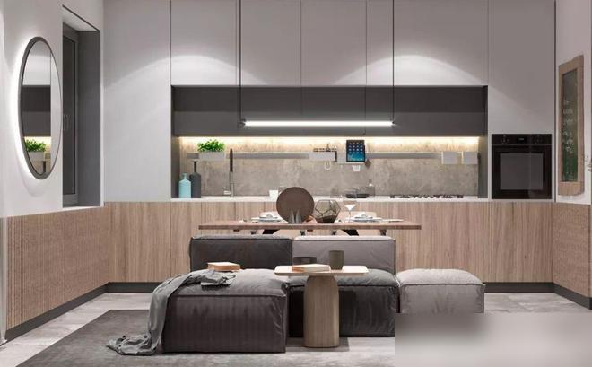 (2)客廳設計的第二重點:深灰色原木色搭配,活力感十足