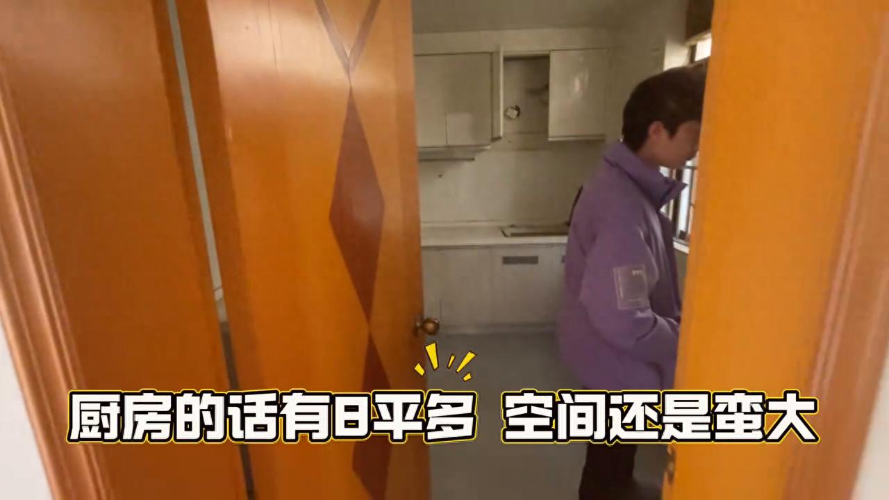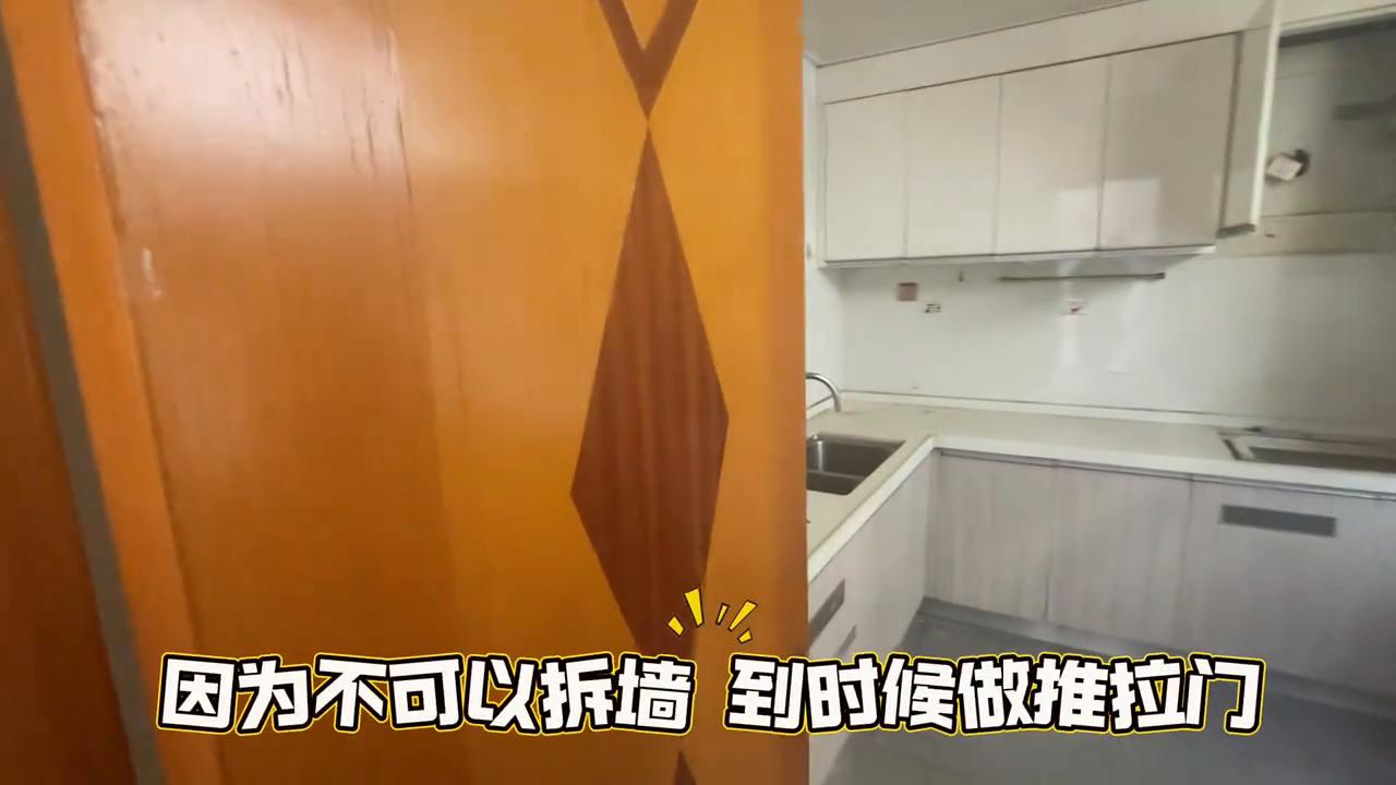 ·左邊就是一個廚房,廚房有8平多,空間還是蠻大,因為不可以拆墻,到時候做推拉門,櫥柜就做一個u型,空間夠大。