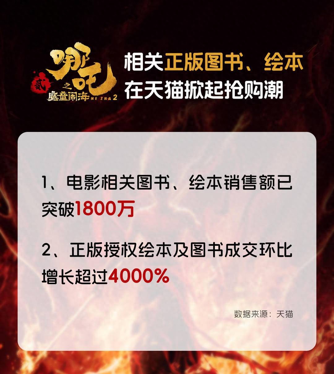天貓最新數(shù)據(jù)顯示,自電影上映以來,包括《哪吒?三界往事》原創(chuàng)繪本、《魔童鬧海藝術(shù)設(shè)定集》及《敖丙傳》在內(nèi)的哪吒相關(guān)圖書整體銷售額已突破1800萬。“設(shè)定集和繪本已經(jīng)一‘吒’難求。”天貓圖書行業(yè)小二表示。