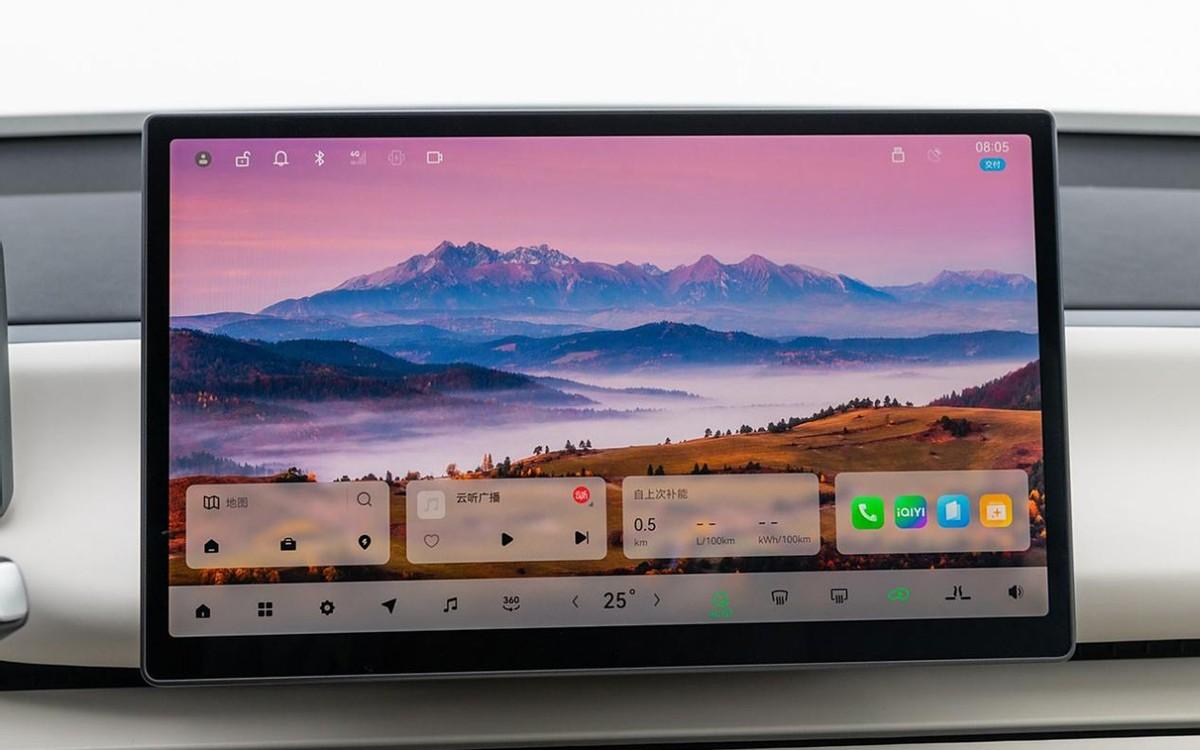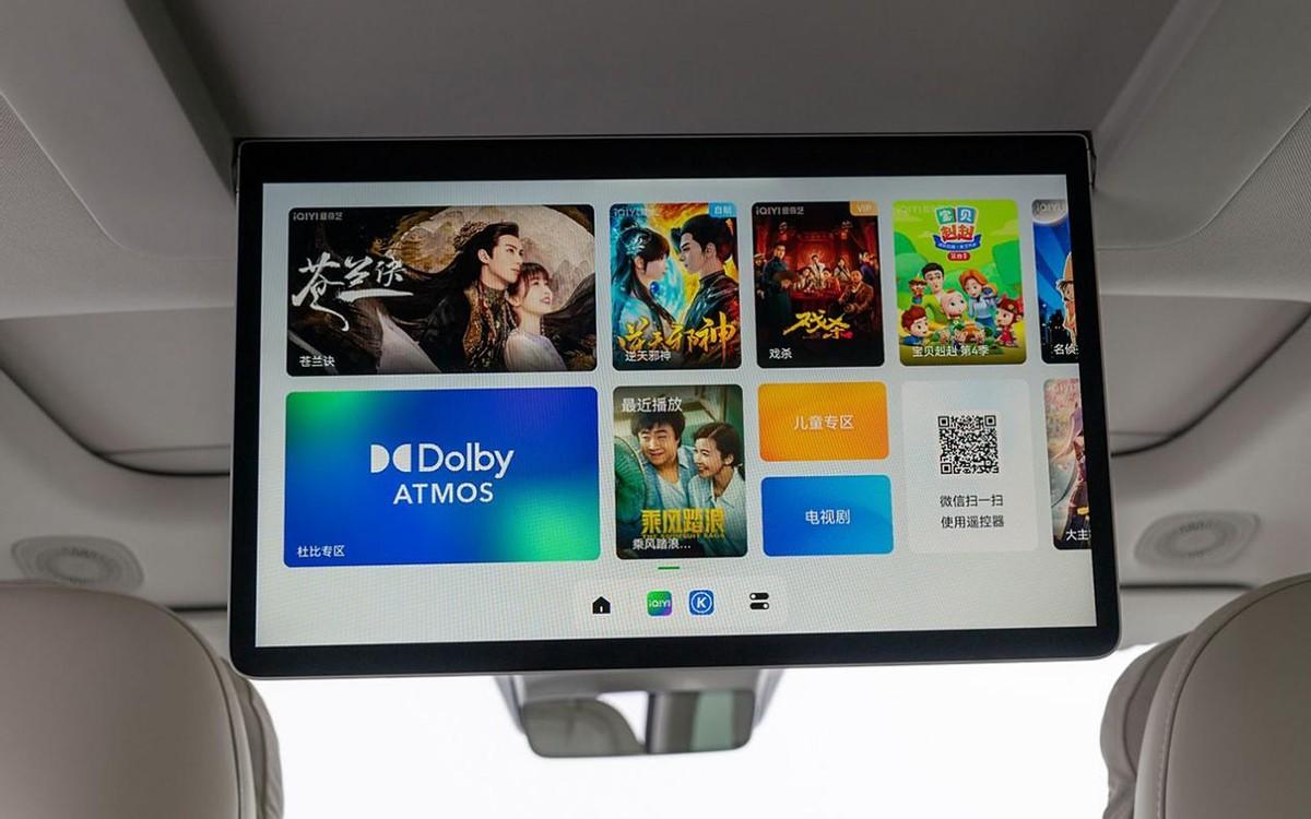 配置上,eπ008提供流媒體后視鏡、雙層夾膠隔音玻璃、50W無線快充、20揚聲器的品牌音響和64色氛圍燈,而后排則是配備了一塊15.6英寸的吸頂屏,這塊屏幕可播放視頻,也可以K歌,帶娃日常出游娛樂設備也有了。