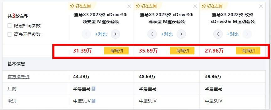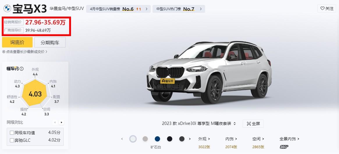二是寶馬X3馬上就要換代了,因此國內(nèi)這代車型就得要給全新車型讓路,那優(yōu)惠自然也就多多啦。從指導價來看,寶馬X3原本那39.96萬元起步的指導價格是真高,也證明寶馬當年在X3的定價上是真有底氣,看來中國人的錢還是很好賺。