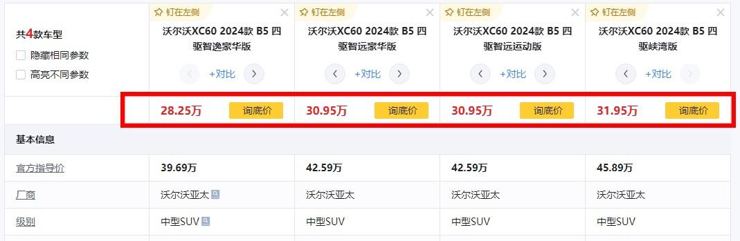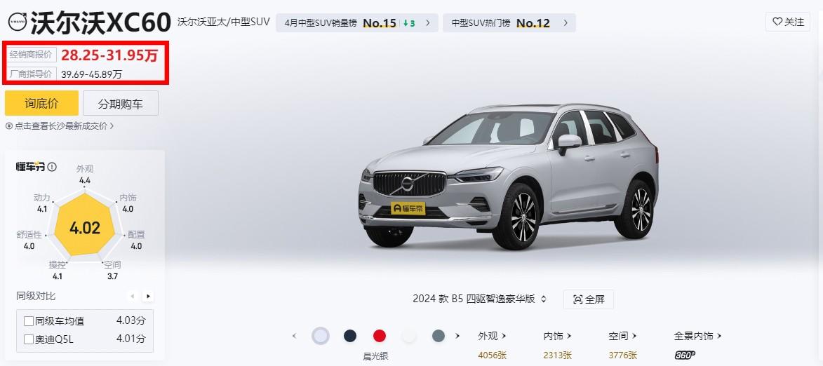 價格方面,沃爾沃XC60起初把指導價給定在了39.69-45.89萬區(qū)間,說實話,對于一家二線豪華品牌來說,這樣的價格確實是有些過于自信了。所幸的是,XC60終端優(yōu)惠一直不小,就以當下來看,其經(jīng)銷商報價便來到了28.25-31.95萬元。雖不如寶馬X3和奧迪Q5L優(yōu)惠大,但好在XC60有自身特色,所以喜歡的朋友也可考慮去購買它。