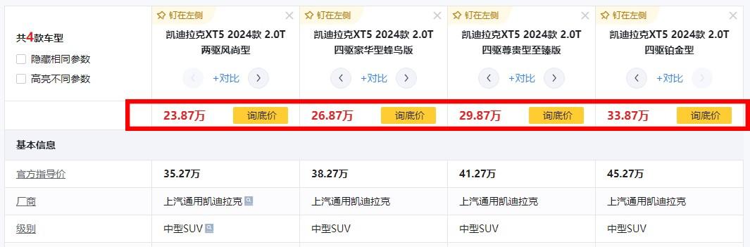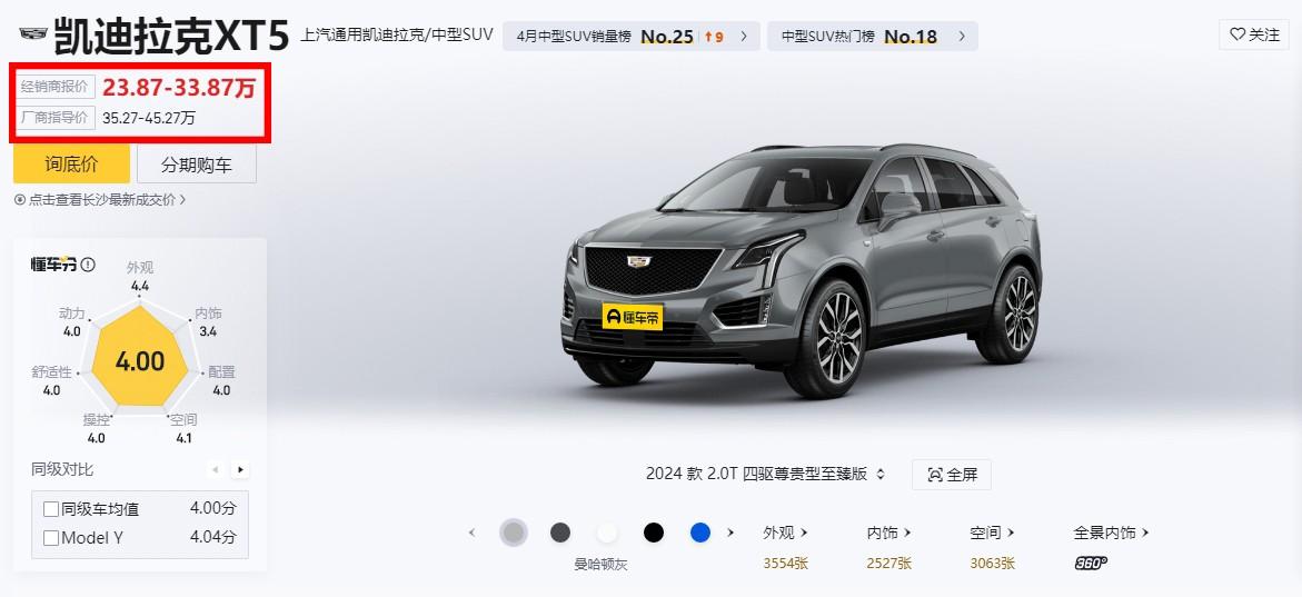 凱迪拉克XT5可能是今天介紹4款車型里最便宜的,畢竟,單是從指導價上來看,它就只需要35.27萬起,而其它3款車都是近40萬起步的價格,這就間接證明了它的定位與實力。在XT5所銷售的這些年里,降價一直是圍繞這款車型所繞不開的話題,畢竟,在通用系的字典里,起步就優(yōu)惠10萬只是常規(guī)操作,更何況XT5馬上就將要換代了。
