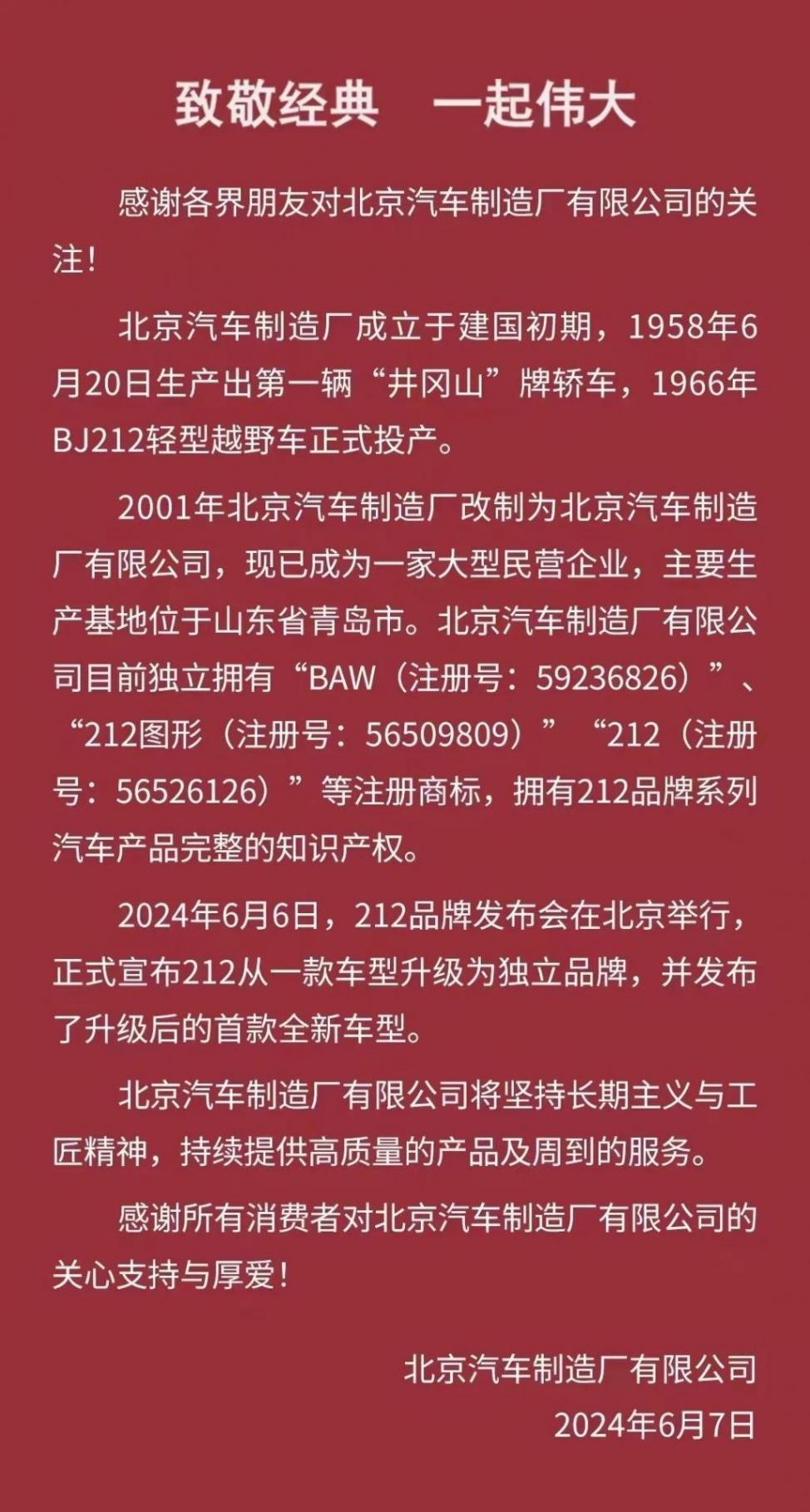 因為在老百姓的印象中,212就是北汽的車型。那為什么北汽會說212與自己無關呢?