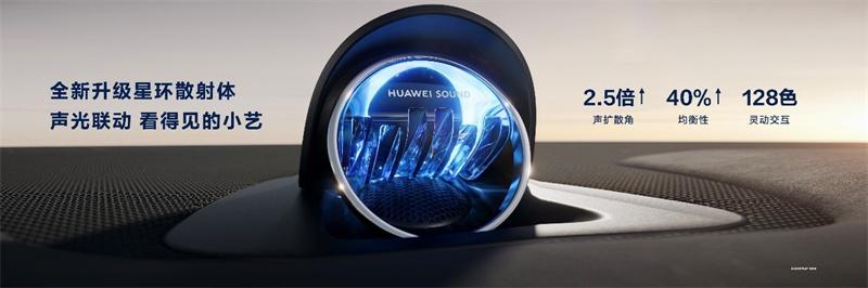 4、座艙升級:HUAWEI SOUND®音響采用的全新星環散射體融入施羅德聲學散射技術,聲音擴散角提升2.5倍,均衡性提升40%,音響效果更震撼。同時,星環散射體可與氛圍燈聯動,讓交互更有儀式感,讓好聲音看得見。結合HUAWEI Maglink®便捷再升級,魔力磁吸可拆可合,適配多種尺寸平板,實現前后屏互動,娛樂創作兩不誤。