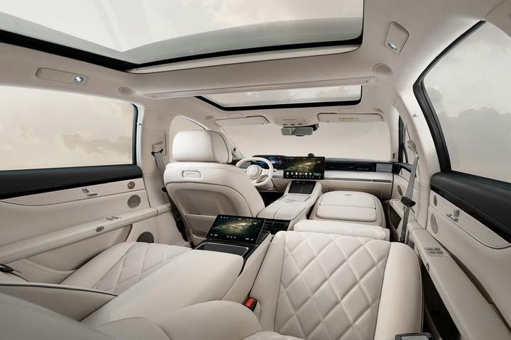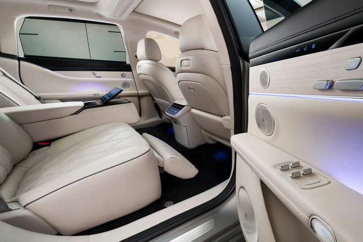 另外,后排乘客還擁有獨(dú)立的行政級(jí)扶手屏,不僅支持多媒體娛樂(lè)功能,還能進(jìn)行車輛部分功能的控制,實(shí)現(xiàn)真正的“移動(dòng)辦公室”體驗(yàn)。功能方面,后排座椅支持多向電動(dòng)調(diào)節(jié)、加熱、通風(fēng)及按摩功能,確保長(zhǎng)途旅行也能保持最佳乘坐狀態(tài)。