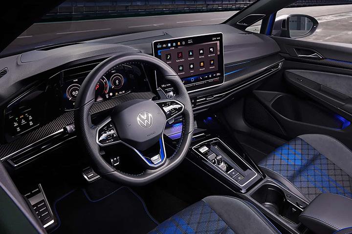內飾方面,新款高爾夫R采用了大眾最新的數字化座艙設計,配備了10.2英寸全液晶儀表盤和12.9英寸懸浮式中控屏,營造出強烈的科技感。除了包裹性十足的一體式運動座椅之外,新車還采用了大量的軟質材料和皮質包裹,使車內空間更加舒適、豪華。